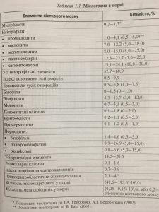 У таблиці 1.1 представлено нормальний клітинний склад кісткового мозку, але ці показники можна використовувати лише як приблизний орієнтир.