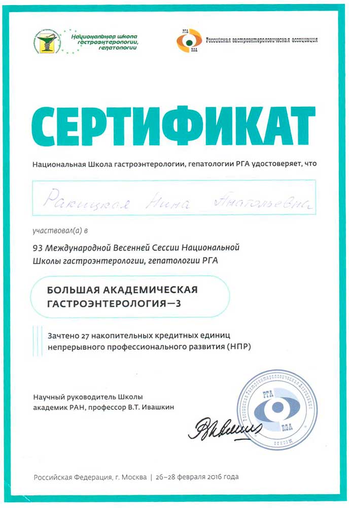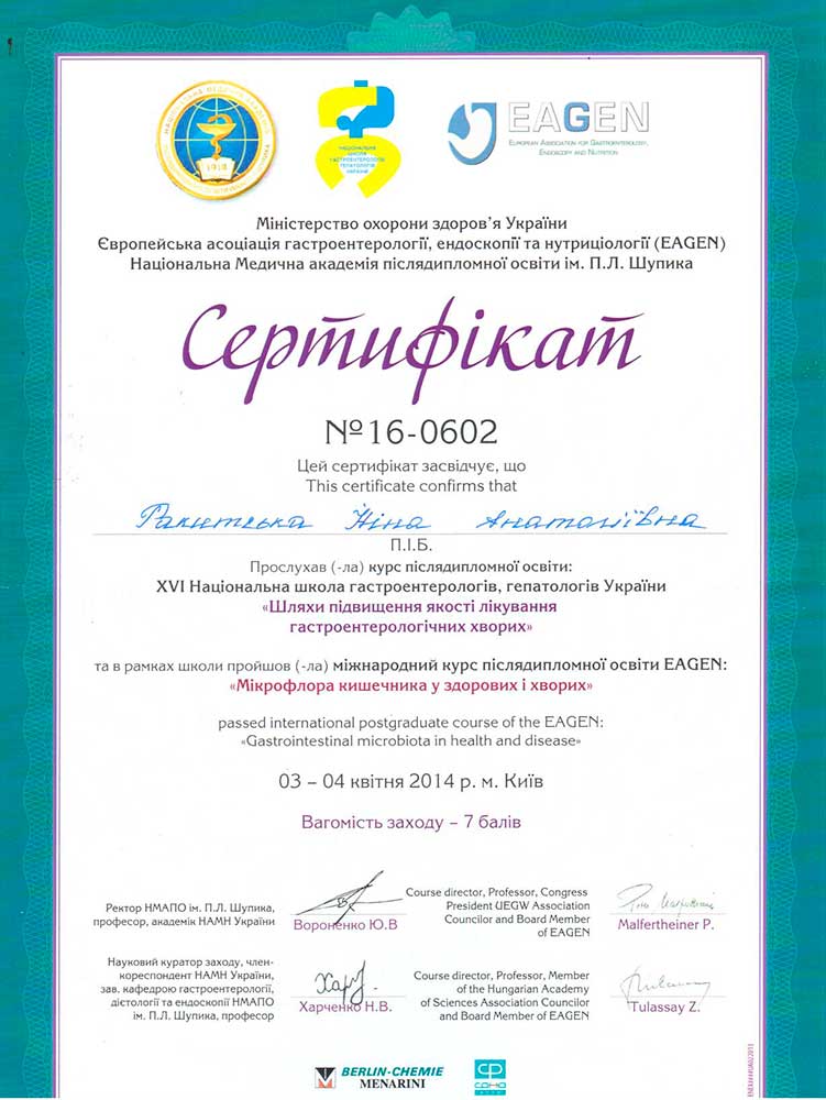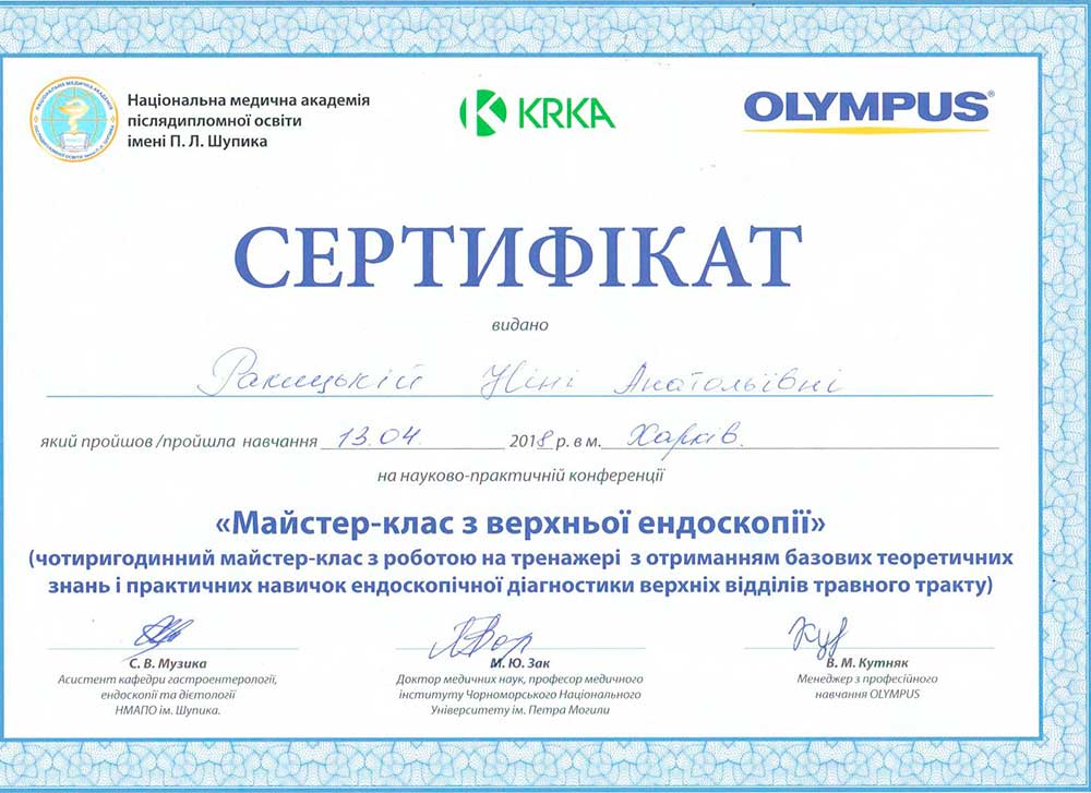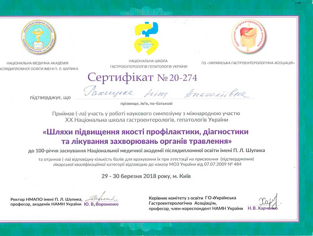 Лікар гастроентеролог вищої кваліфікаційної категорії